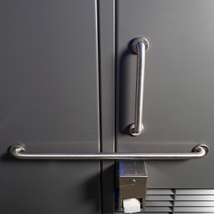 Angled louvers on the top and bottom of the restroom provide limited lines of sight for public officials to detect inappropriate use. Installing the Loo in areas designed with Crime Prevention Through Environmental Design (CPTED) principles can enhance this feature’s effectiveness.